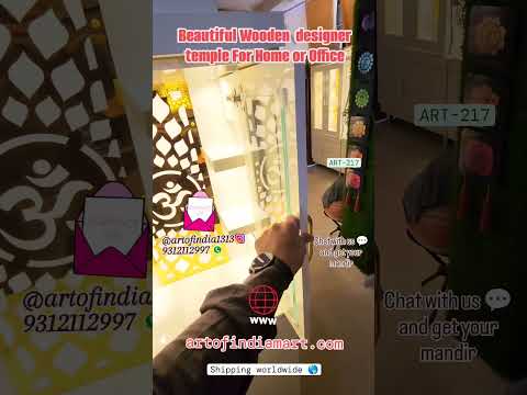 ARTOFINDIA/ Beautiful White (Om) Design Wooden Mandir With Glass Doors & Shelfs For Home/Designer Temple