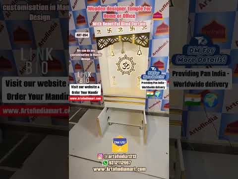 ARTOFINDIA Beautiful White Wooden Mandir Acrylic (Om) With (Mor Pankh~ Gayatri Mantra) Blind Curtain For Home / Designer Temple