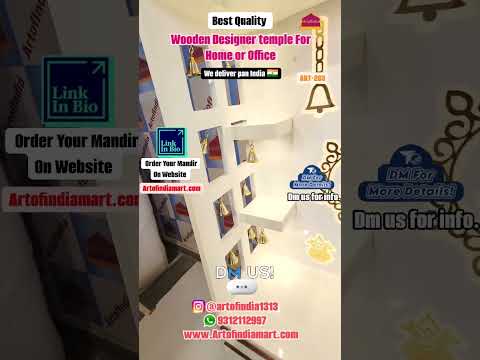 ARTOFINDIA Beautiful White Wooden Mandir Acrylic (Om) With Side Bells & Shelfs For Home / Designer Temple