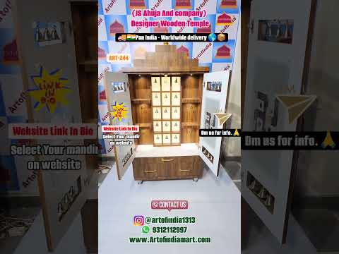 ARTOFINDIA Beautiful Brown Wooden Mandir With Designer Glass Doors, Shelfs & Bells For Home / Designer Temple