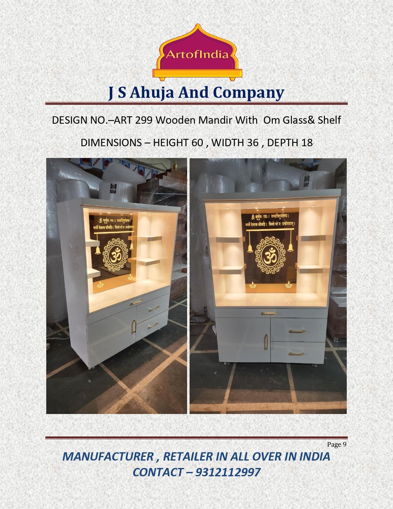 ARTOFINDIA White Wooden Pooja Mandir With Om Glass & Shelfs and Drawers Included Tray